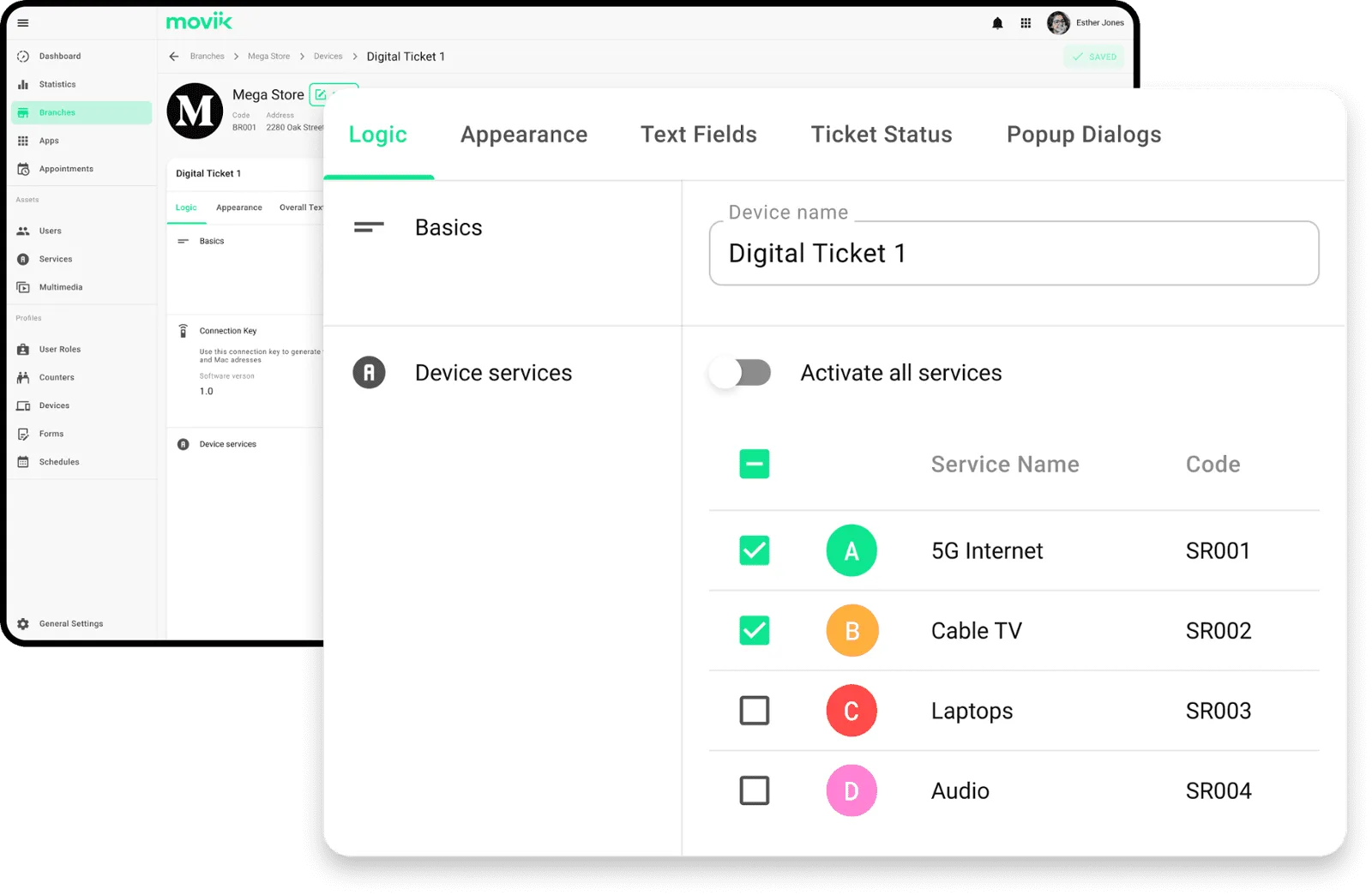 Define and display the services you have to offer on your Ticket Dispenser. Configure it all in Backoffice.