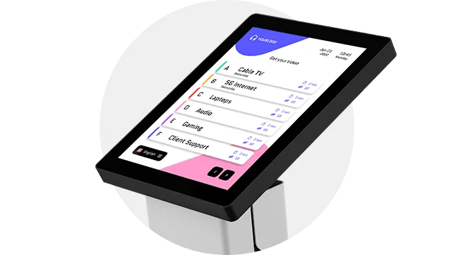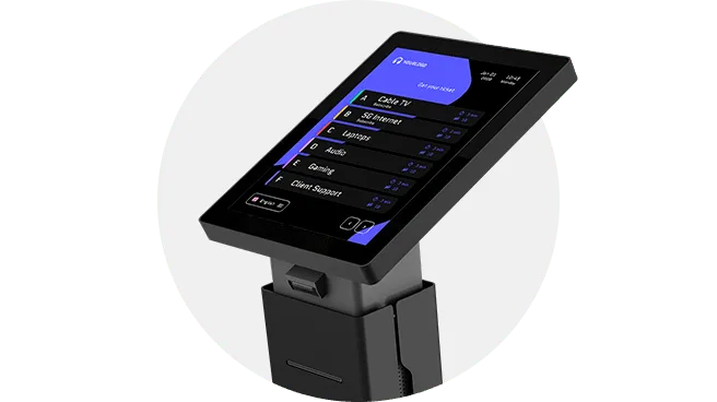 Customers that prefer this conventional method can get their tickets at a physical ticket dispenser. The options displayed and selected will help with screening your customers and organizing the queues.