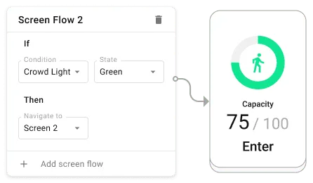 We have created an innovative Smart Player that will enable or disable the queue management system according to the store’s occupancy.