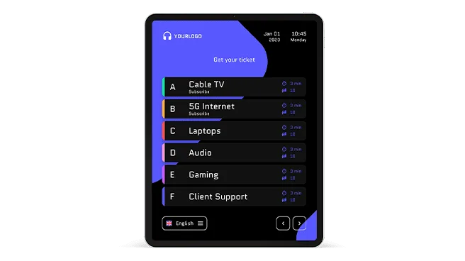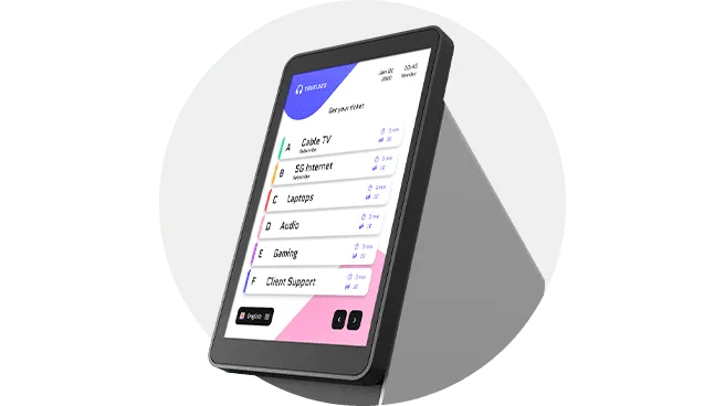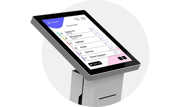Se utilizzi i biglietti digitali, puoi utilizzare un tablet in un sistema completamente virtuale. I clienti possono anche effettuare il check-in utilizzando il loro smartphone e ricevere notifiche in tempo reale sul loro turno. Interessato?