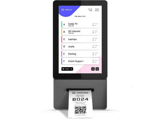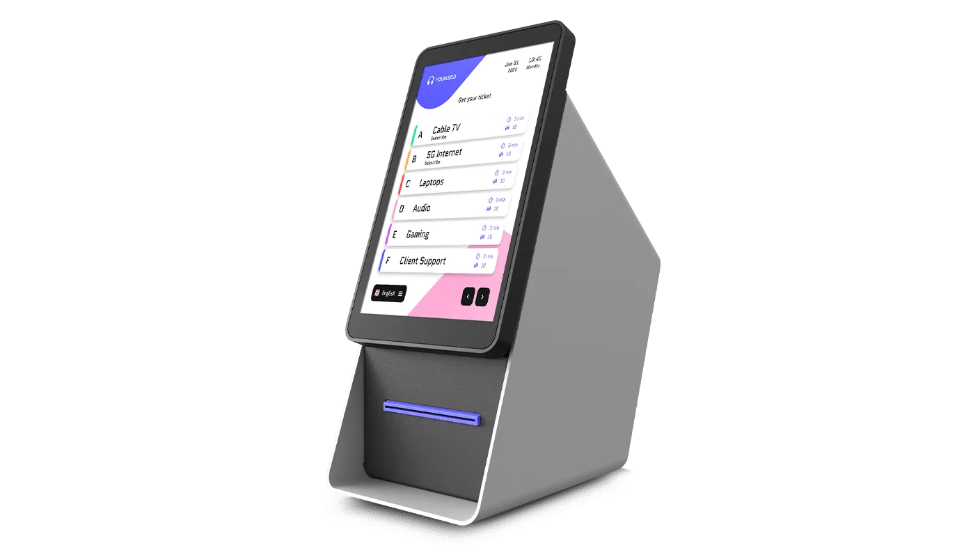 Scegli Tiik 15'' o Tiik 7''. Configuralo in soli 15 minuti. Ti assicuriamo che un chiosco per le code con una stampante integrata migliora la velocità del servizio.