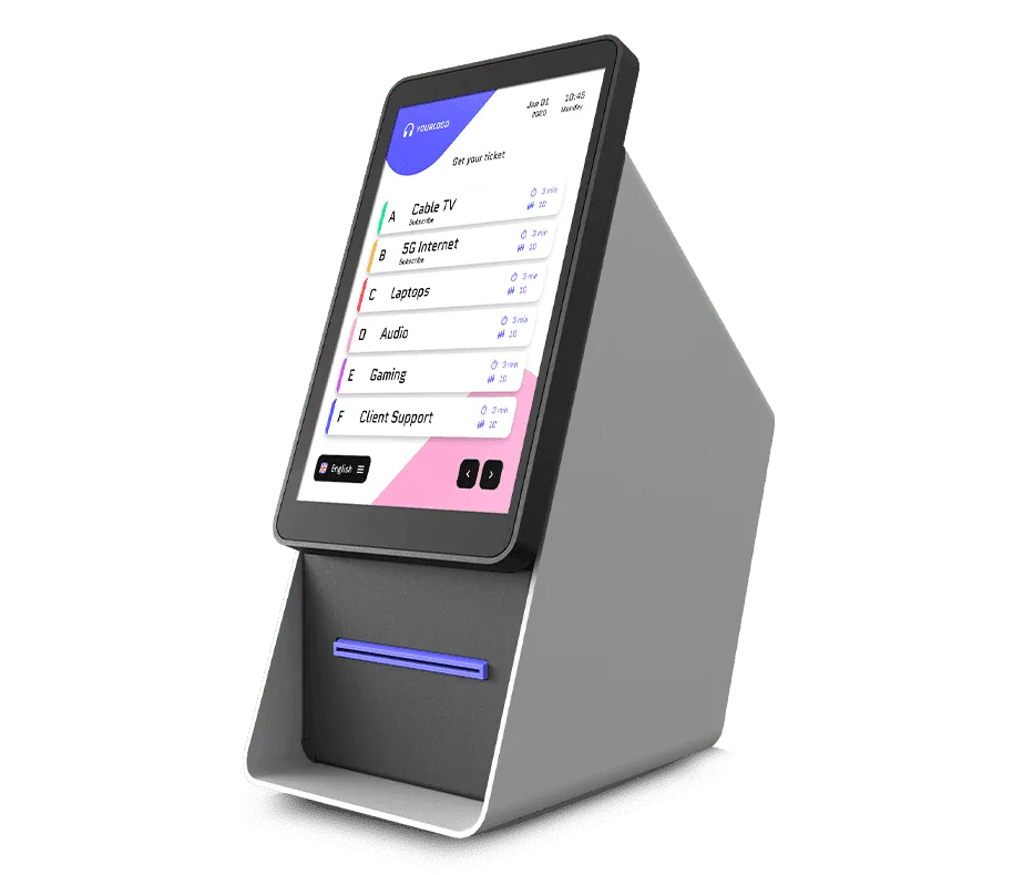 Разместите киоск Tiik 7 в ключевых местах, чтобы ускорить регистрацию и организовать очереди. Его компактный дизайн обеспечивает беспрепятственный опыт регистрации даже в ограниченных пространствах.