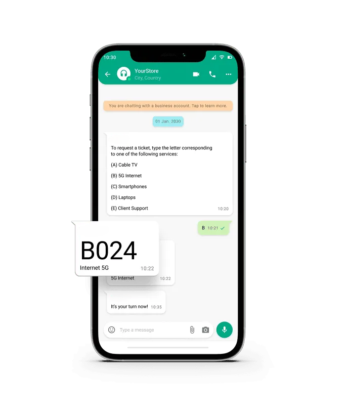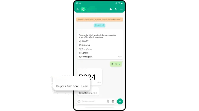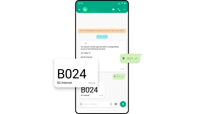 Клієнти отримують відповідь у WhatsApp з номером квитка та часом очікування.